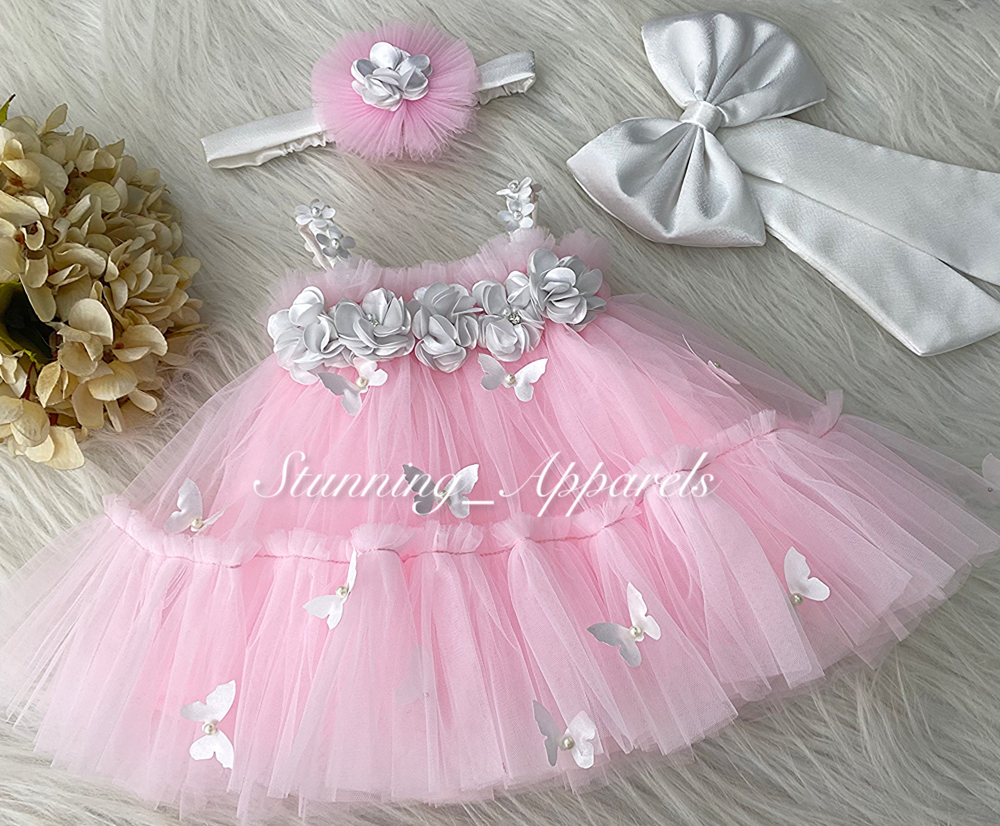Butterfly Work Cute Party Wear Baby Pink Dress