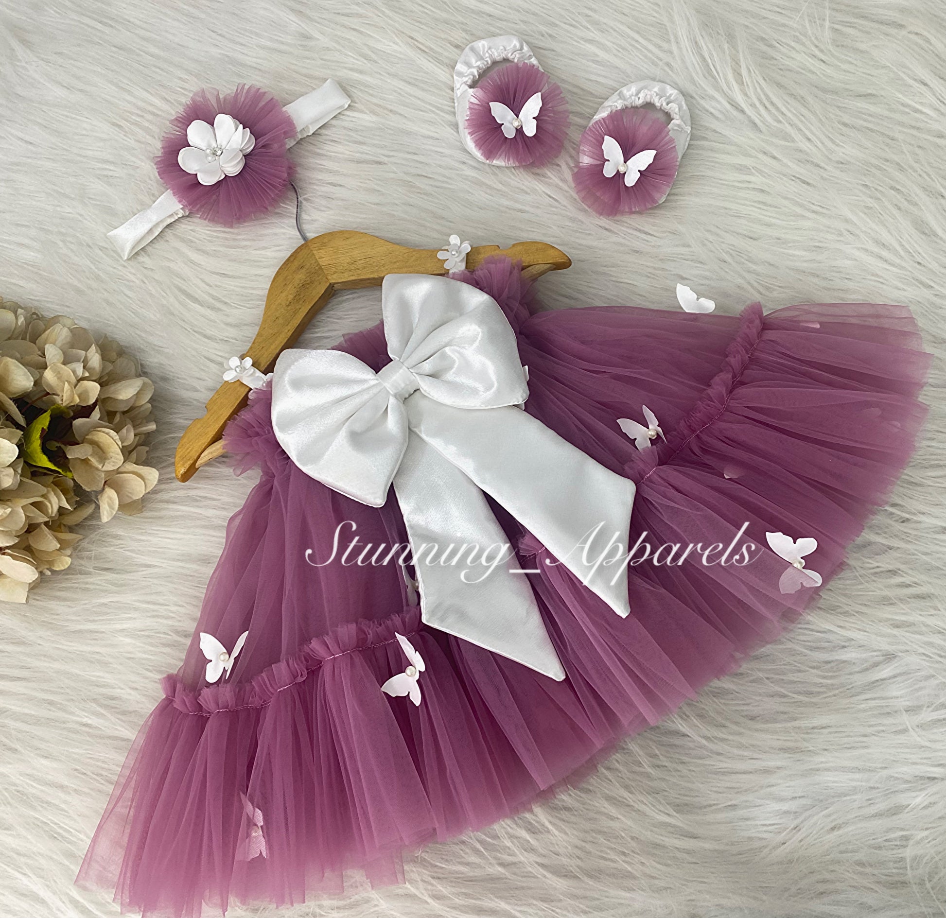 Butterfly Work Cute Party Wear Dusty Pink Umbrella Dress