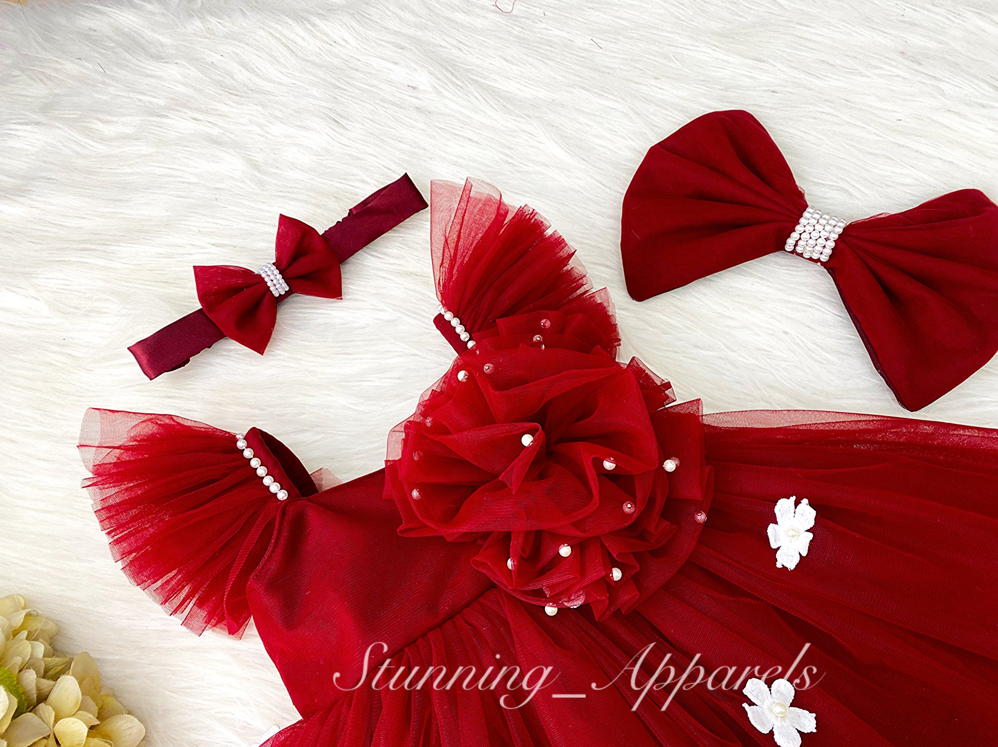 - The cute flower work on the skirt and pearls work in strapped sleeves add a extra charm in dress.